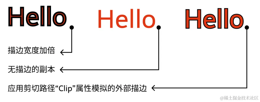 而要实现外描边效果,则需要通过剪切路径(clip)属性来裁剪图形,模拟出外描边的视觉效果: