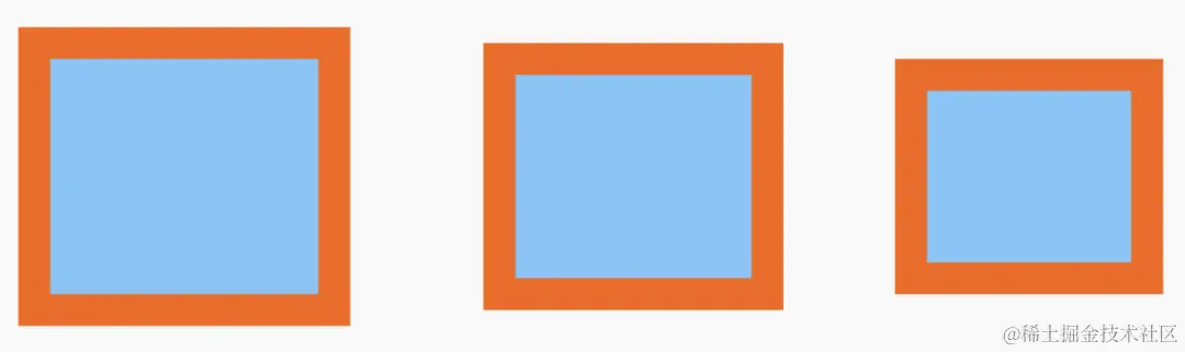 SVG 标准只允许描边位于图形的几何中心线上,并没有提供将描边对齐到内部或外部中心线的属性。这导致了一个有趣的现象:即使几个矩形的尺寸完全相同,由于描边位置的不同,它们看起来却像是大小不一。这种视觉错觉揭示了SVG在描边位置上的限制。从下面的视频中可以看到,随着元素的描边宽度增加到一定程度时,它会占用图形的内外空间,最后完全破坏图形。
