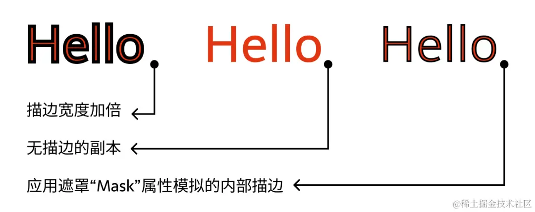 那么,在 SVG 中实现内部描边和外部描边有没有其他方法呢?好消息是,确实有办法达到目标。但不友好的是,为了克服这些限制,我们不得不采取一些创造性的“笨办法”。例如,可以通过遮罩(mask)属性来模拟实现内部描边: