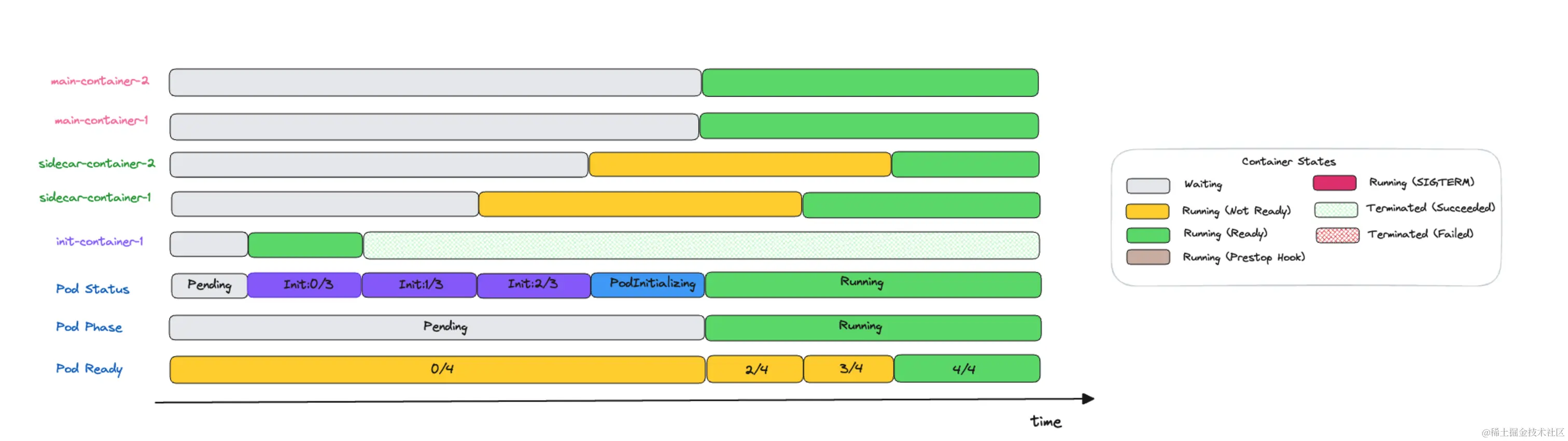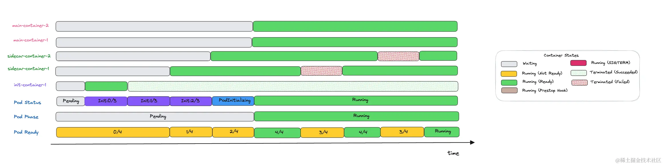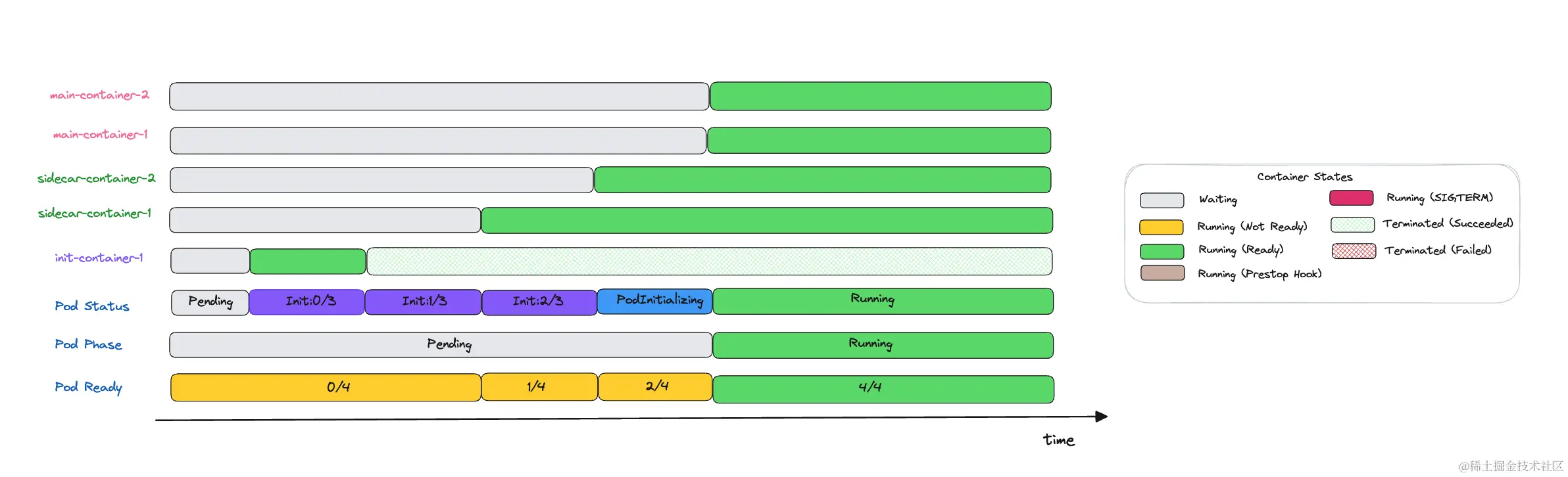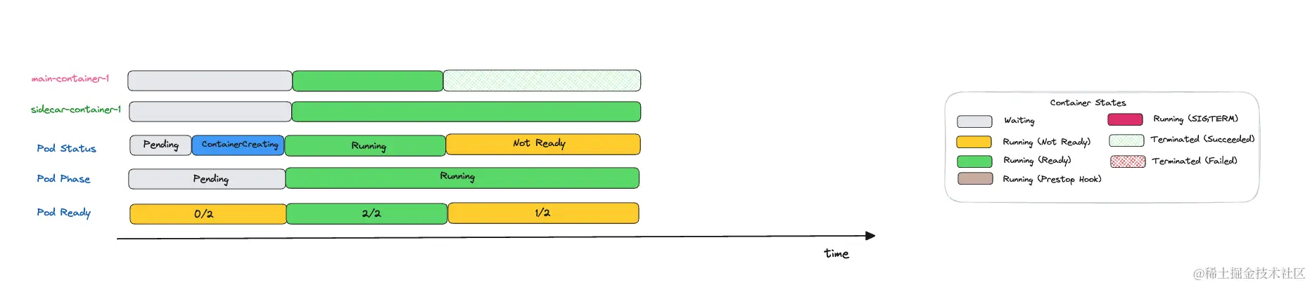 以下这张图展示了上面描述的 Pod 状态变化过程: