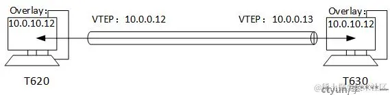 如下图所示,隧道两个端点(Underlay)地址分别为10.0.0.12和10.0.0.13,Overlay端点10.0.10.12和10.0.10.13穿越这条隧道通信。