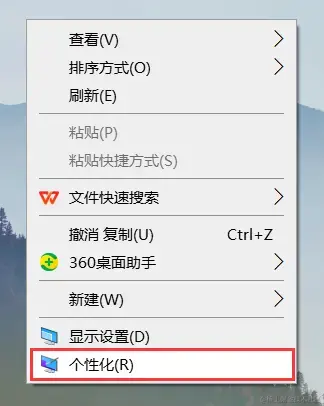步骤1:右键单击桌面空白处,选择**【个性化】**。