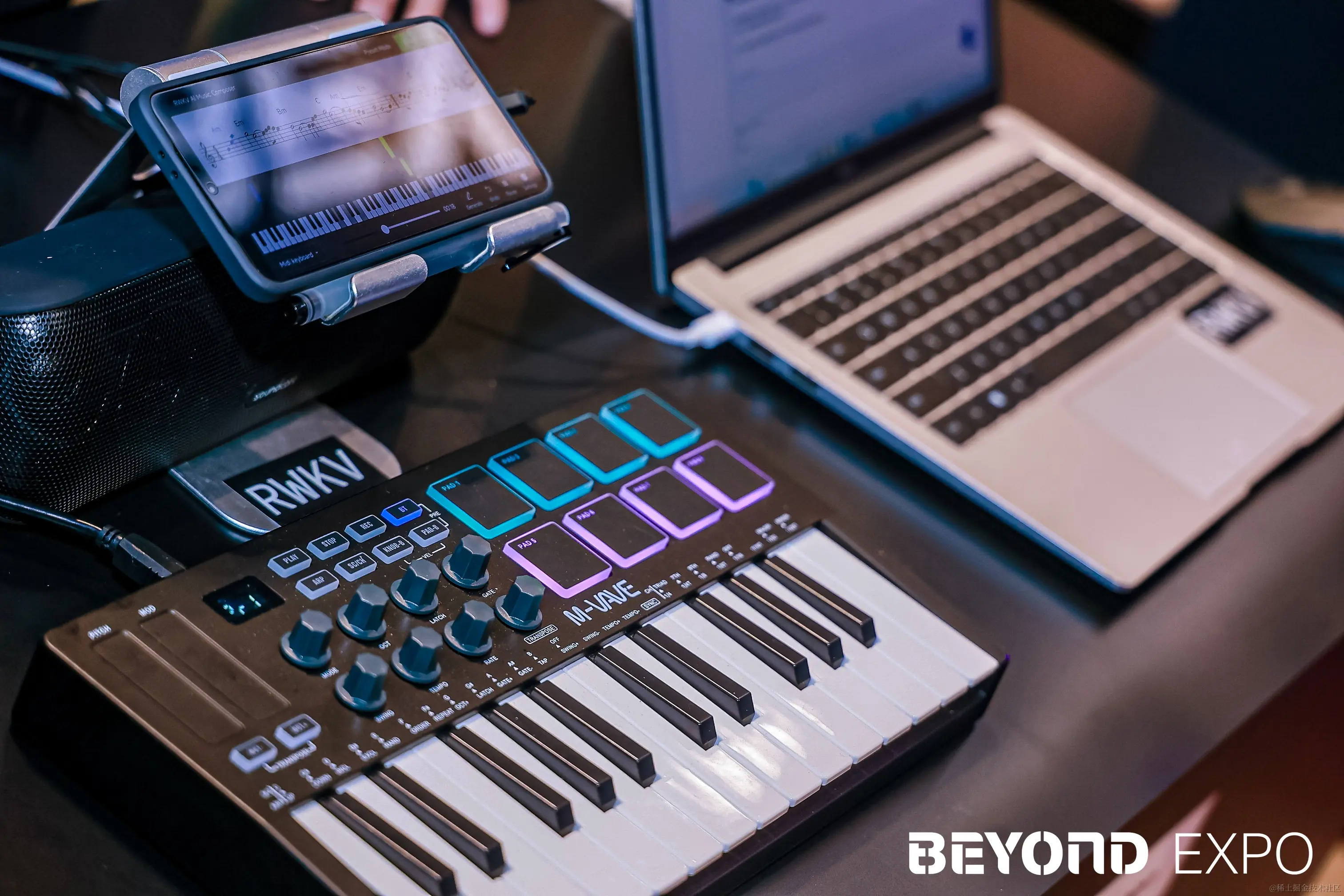 5 月 23 - 25 日,作为 NVIDIA Inception Program 成员之一, RWKV 受邀参加第四届 BEYOND 国际科技创新博览会(BEYOND Expo 2024),在大会现场中展示了 RWKV AI 作曲工具和 RWKV-6 7B 语言模型。