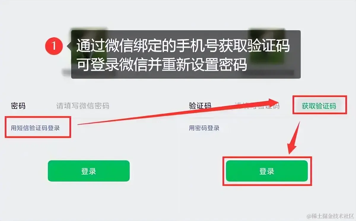 步骤1:在使用微信密码登录的界面,选择【用短信验证码登录】,就可以通过绑定的手机登录微信,再修改微信密码。