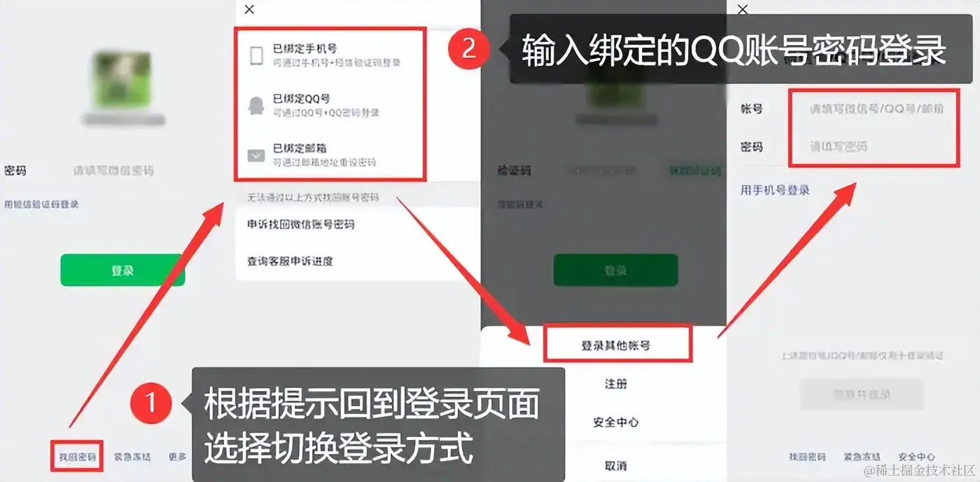这是最常见的找回密码方式。只需打开微信登录界面,点击 【忘记密码】 ,就可以通过微信绑定的各种信息来找回。忘记微信密码时,如果你有绑定的手机号、QQ号或邮箱,那么这个方法将是你找回密码的首选。具体操作如下: