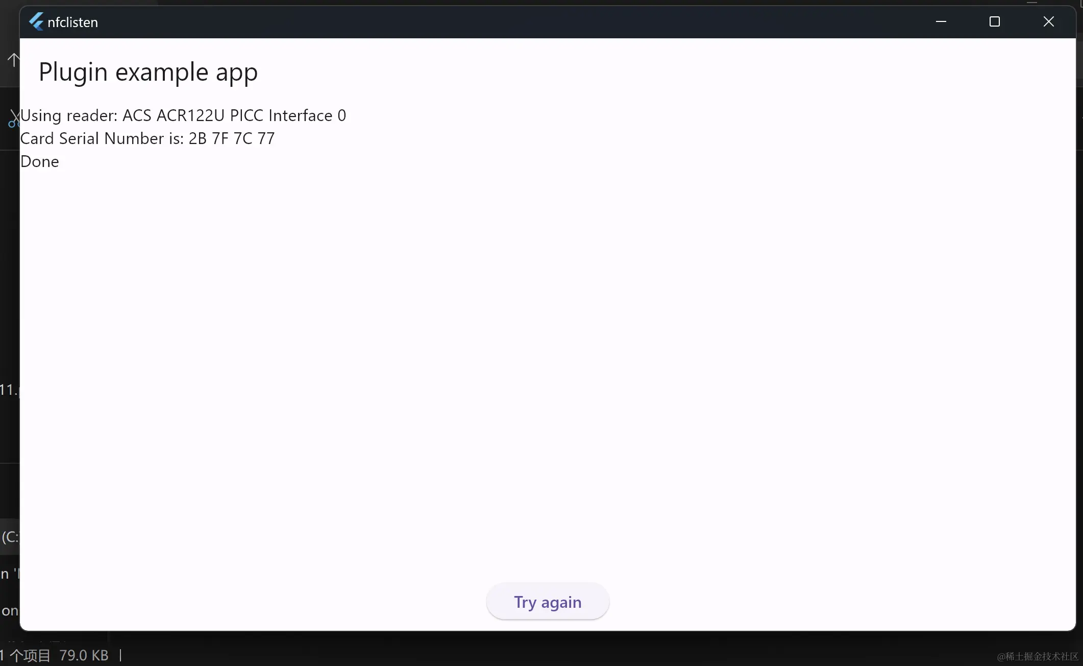 如果有识别到有nfc卡的话,点击一下底部的try again即可出现卡号