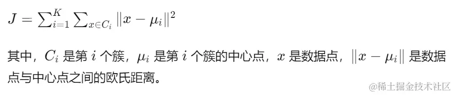K均值聚类通过迭代优化的方法,将数据点分配到 K 个簇中,使得每个簇内的数据点与簇中心(质心)之间的距离平方和最小化。具体步骤包括: