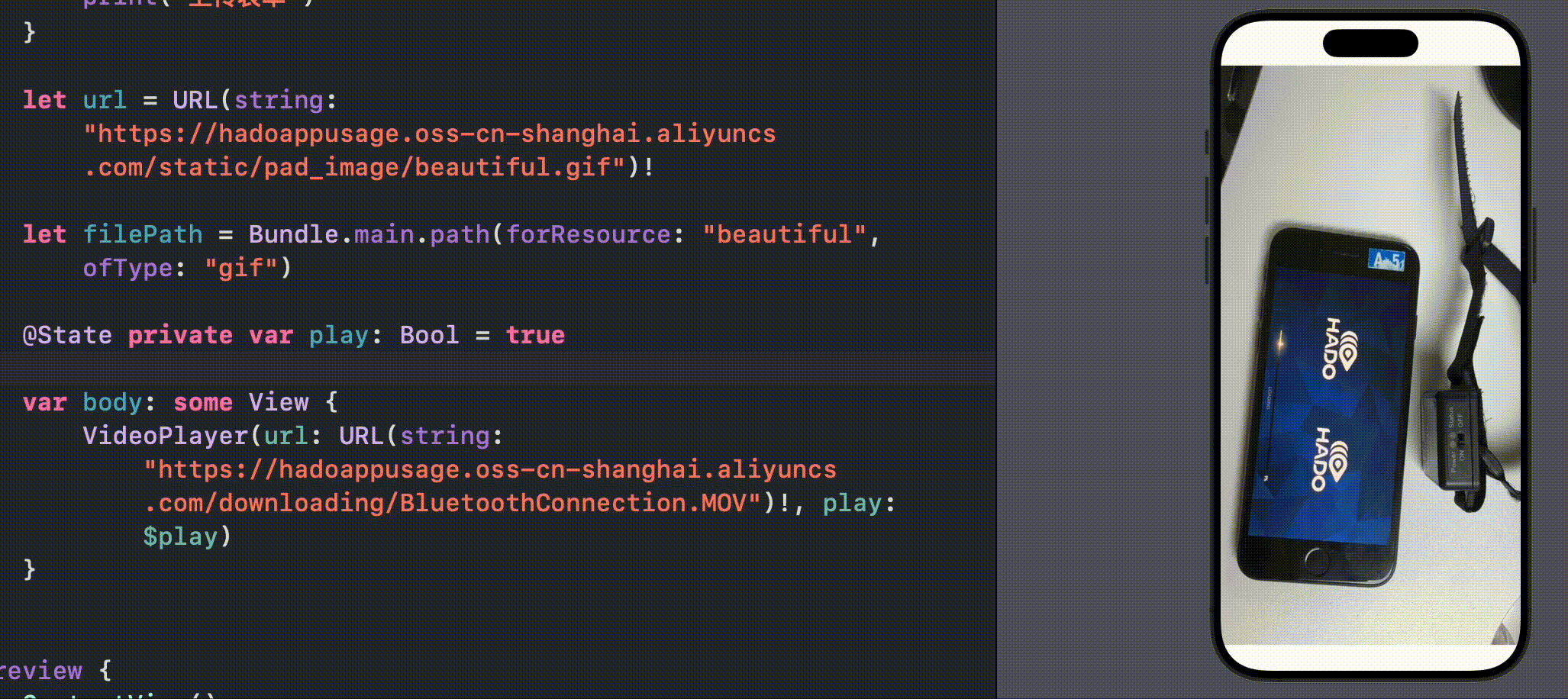 VideoPlayer(url: URL(string: "你的视频URL链接")!, play: $play)