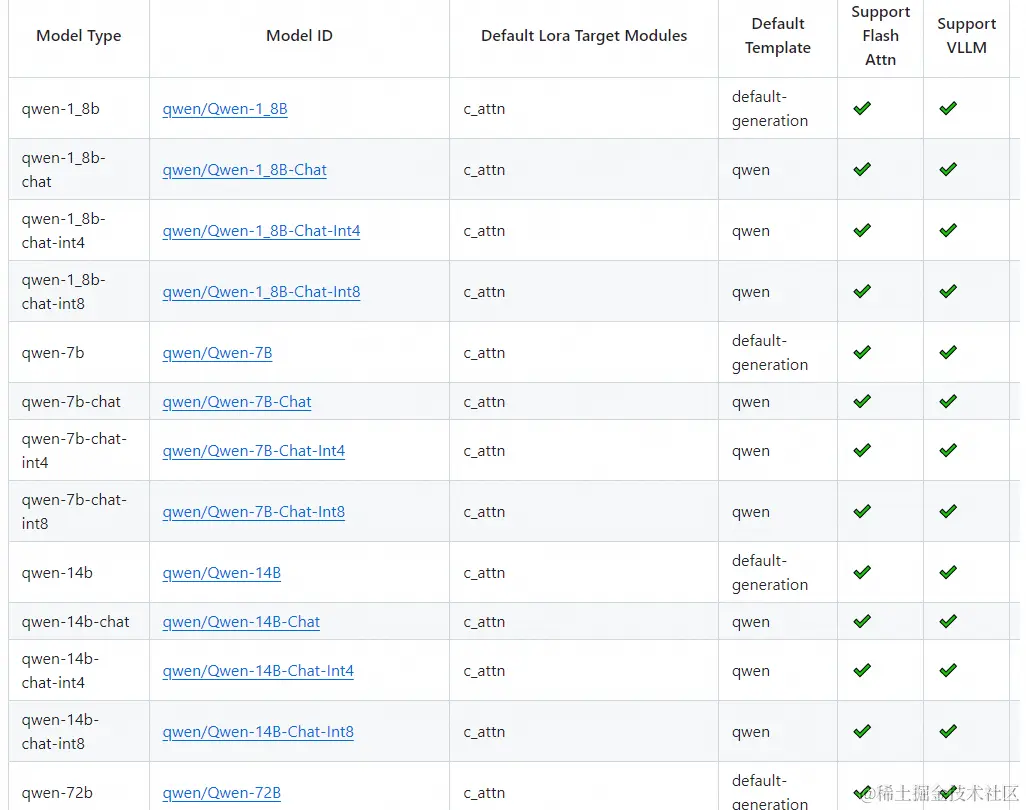VLLM & LoRA支持的模型可以查看: docs.vllm.ai/en/latest/m…
