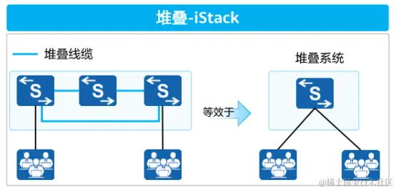 简而言之,堆叠就是将多台支持堆叠功能的交换机通过专用线缆或端口连接在一起,使之在逻辑上表现为一个统一且大型的交换设备。