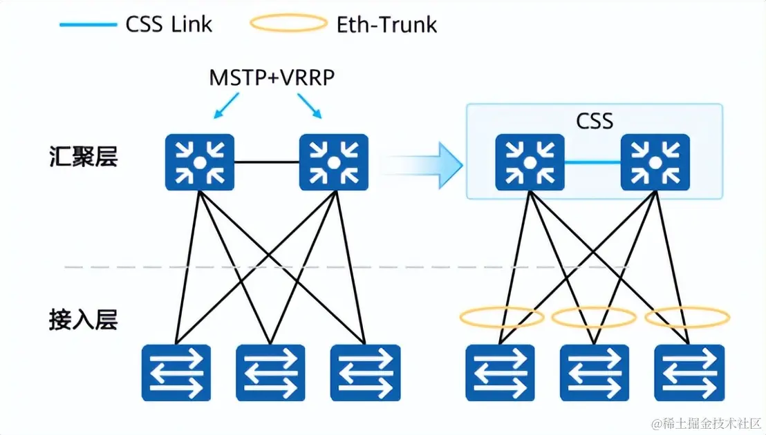 从性能的角度看,通过堆叠可以有效地增加网络的端口数量,提升整体的网络吞吐量和数据处理能力。而从稳定性的角度看,堆叠提供了链路和设备的冗余,极大地增强了网络的稳定性和可靠性。