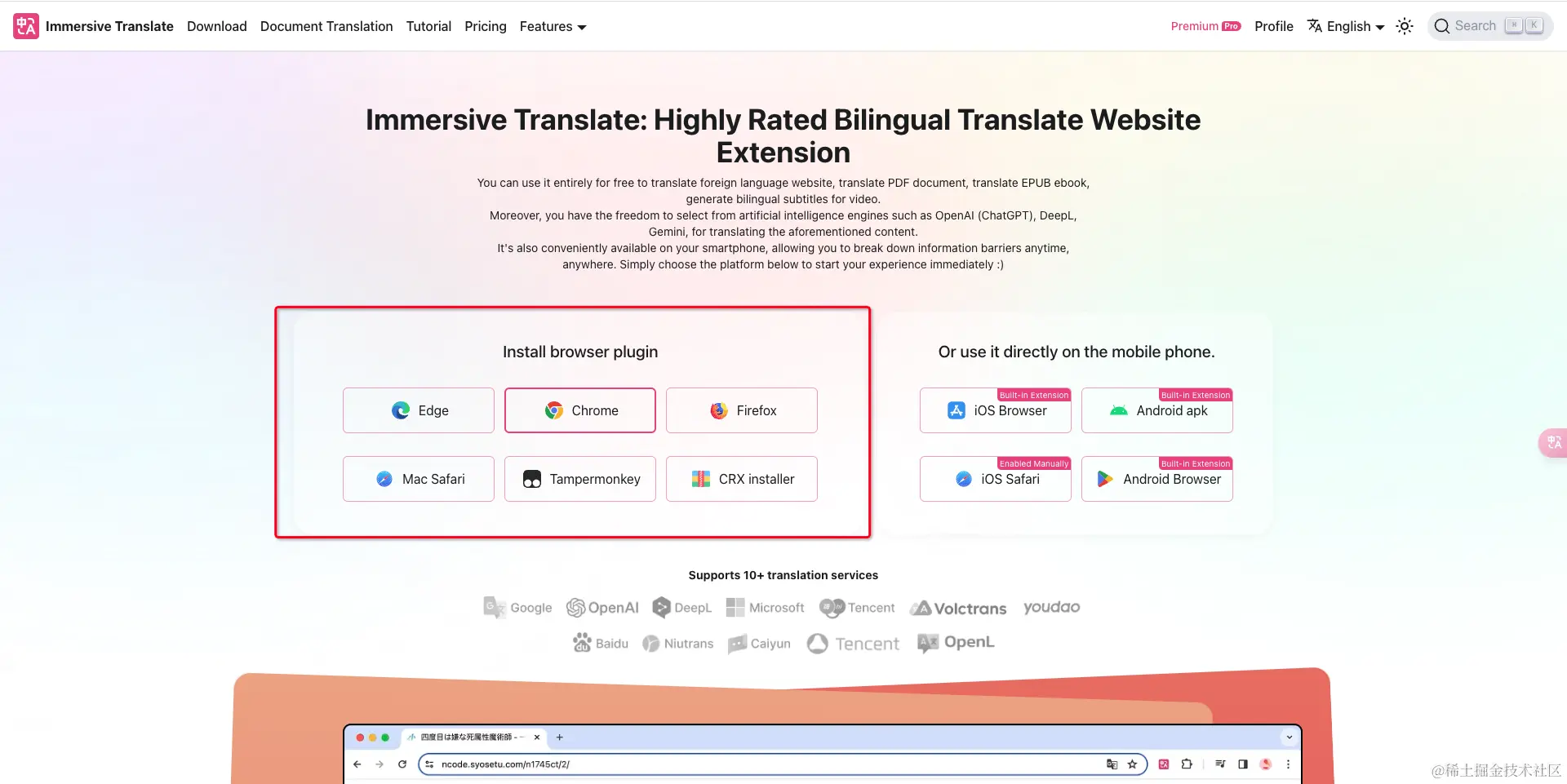 浏览器插件:沉浸式翻译 immersivetranslate.com/en/