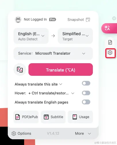 安装好之后 吸附在浏览器页面的右侧有一个入口,翻译非常简单,最重要的是网页翻译的时候一点不会弄乱样式。