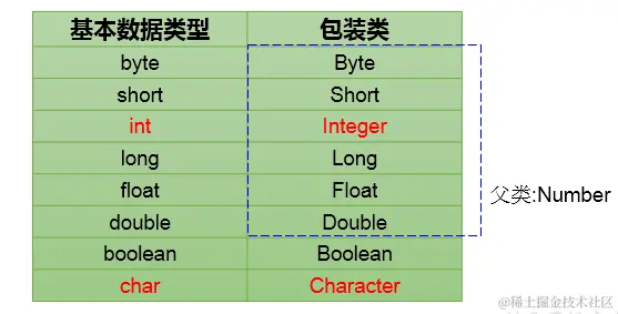 基本数据类型与对应的包装类: