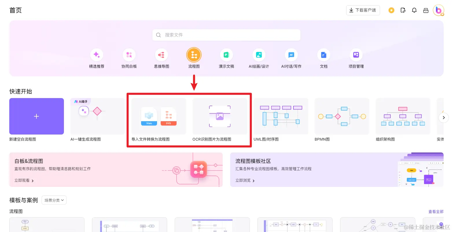 - 导入文件转换为流程图:支持导入Visio、SVG文件,自动转换为boardmix流程图;