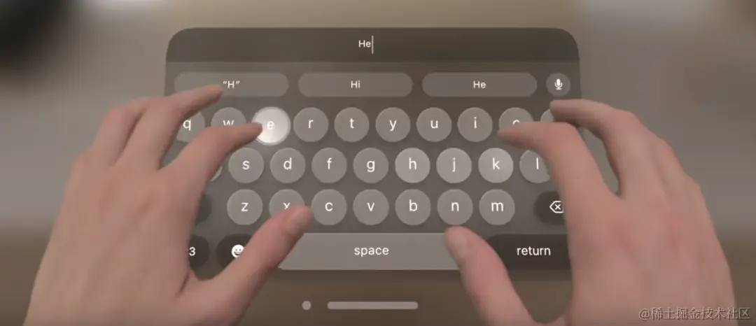 除了眼手,在Vision OS中,用户还可以结合视觉和听觉模态进行交互。例如,在某些输入框中,用户可以通过注视选择文本框,然后使用语音输入文字,有效地结合了视觉的定位功能和语音的快捷输入。