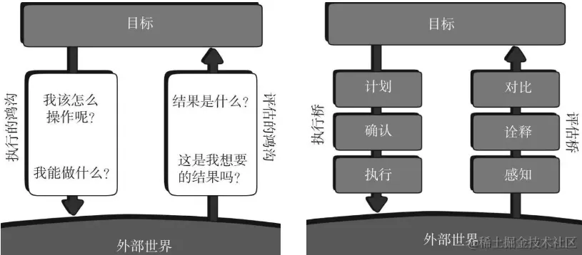 我们在操作设备时会面对两个心理鸿沟:一个是执行的鸿沟,我们首先需要清楚如何操作;另一个是评估的鸿沟,我们需要清楚操作的结果。