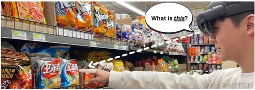 Jaewook Lee 等人在 SIGCHI 2024 会议上发表的 GazePointAR 多模态交互技术利用眼睛注视、指向手势和对话历史记录来消除语音查询的歧义。用户可以通过注视或指向来提问。如下图,当用户询问 「这是什么?」 时,GazePointAR 会自动将「这」替换为「带有 Orion Pocachip Original 文字的包装物品」,然后将其发送到大型语言模型进行处理和响应。处理后的结果会由文本转语音引擎读取,并以语音形式回答用户的问题。