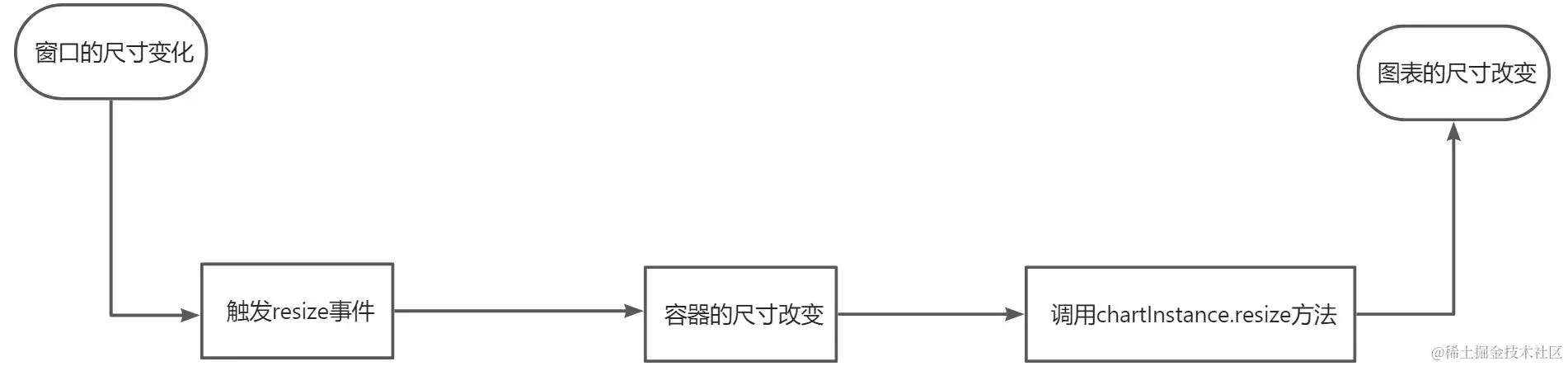 正确的逻辑应该如下图所示,窗口尺寸的变化导致容器尺寸的变化,然后再调用chartInstance.resize方法改变图表的尺寸。