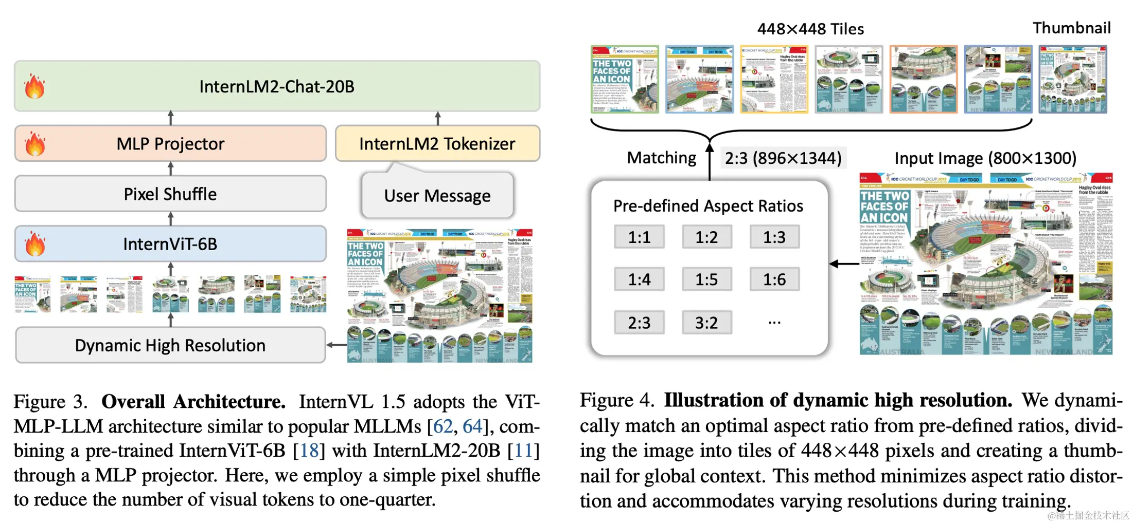 InternVL-Chat-V1-5 的这种动态分辨率策略类似于 GPT-4V 的 “低分辨率” 和 “高分辨率” 模式,用户可以根据图像内容选择合适的分辨率。例如,对于简单的场景描述,可以使用低分辨率,而对于需要精确理解细节的文档图像,则可以使用高达 4K 的高分辨率。