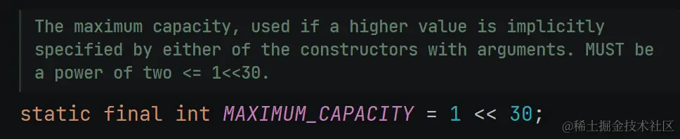 - MIN_TREEIFY_CAPACITY: 最小树化容量,当哈希表中的桶数小于这个值时,不会进行树化,而是扩容 。