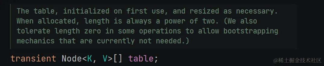 在这里顺便说一下table的默认大小是16,而且table的大小永远都是2的次幂,这个下面说