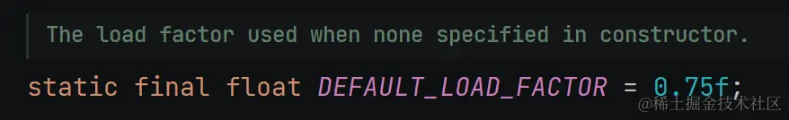 - DEFAULT_LOAD_FACTOR: 默认加载因子,默认加载因子是当元素数量达到比例的时候进行扩容,例如此处默认是0.75所以在容量达到75%的时候进行扩容。