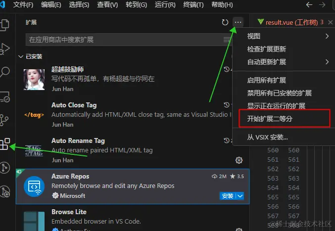 可以用vscode插件自带的扩展二等分方法来确定的哪些插件有问题?原理是通过随机禁用一半插件,进入扩展二等分模式,然后和平常一样操作,观察vscode崩溃情况。 如果一切正常,就禁用当前启用的一半插件,从禁用的一半插件里启用一半插件,继续和平常一样操作,观察vscode崩溃情况。 如果出现了崩溃的情况,就继续从当前启用的插件里再禁用一半插件,继续和平常一样操作,观察vscode崩溃情况。
