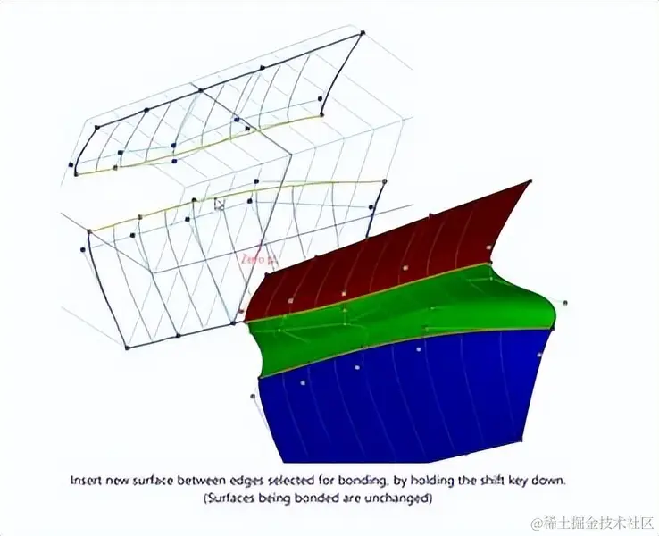 - 建模器:粘合时插入表面。