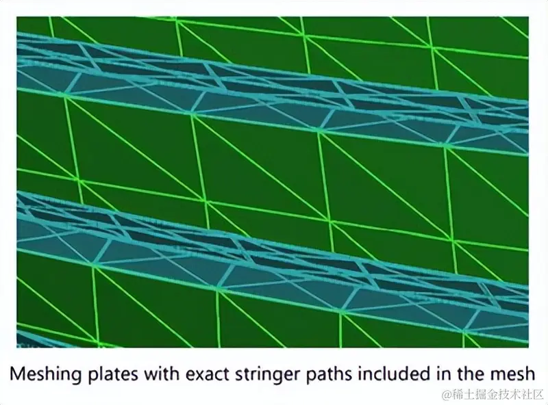 如果选中包含纵梁路径,则纵梁路径边缘将与板网格四边形元素边缘重合: