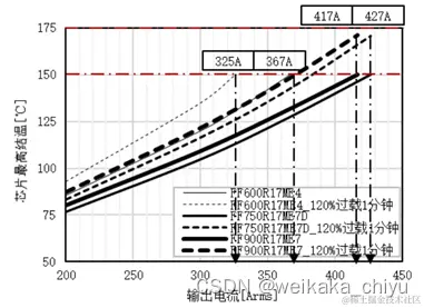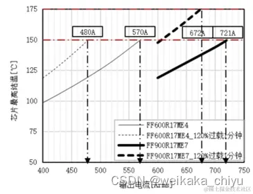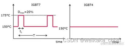 图7.IGBT7和IGBT4芯片允许的工作结温,IGBT过载结温最高175℃,IGBT4最高结温150度