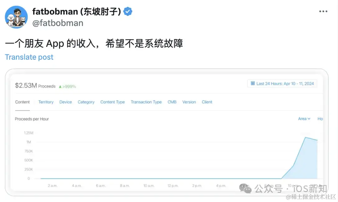 著名的开发者东坡肘子说一个朋友 App 的收入,希望不是系统故障。