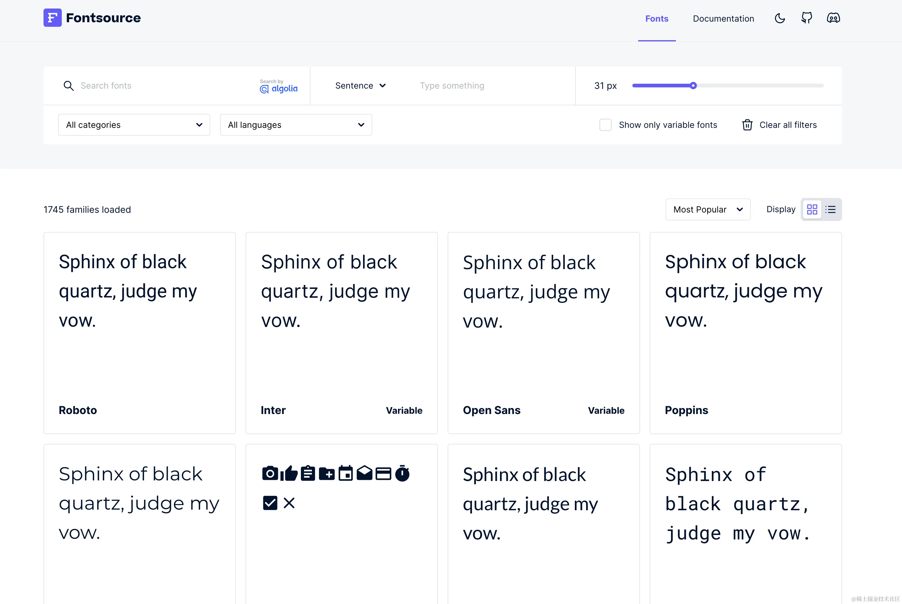 - 使用 npm 分发的开源字体合集