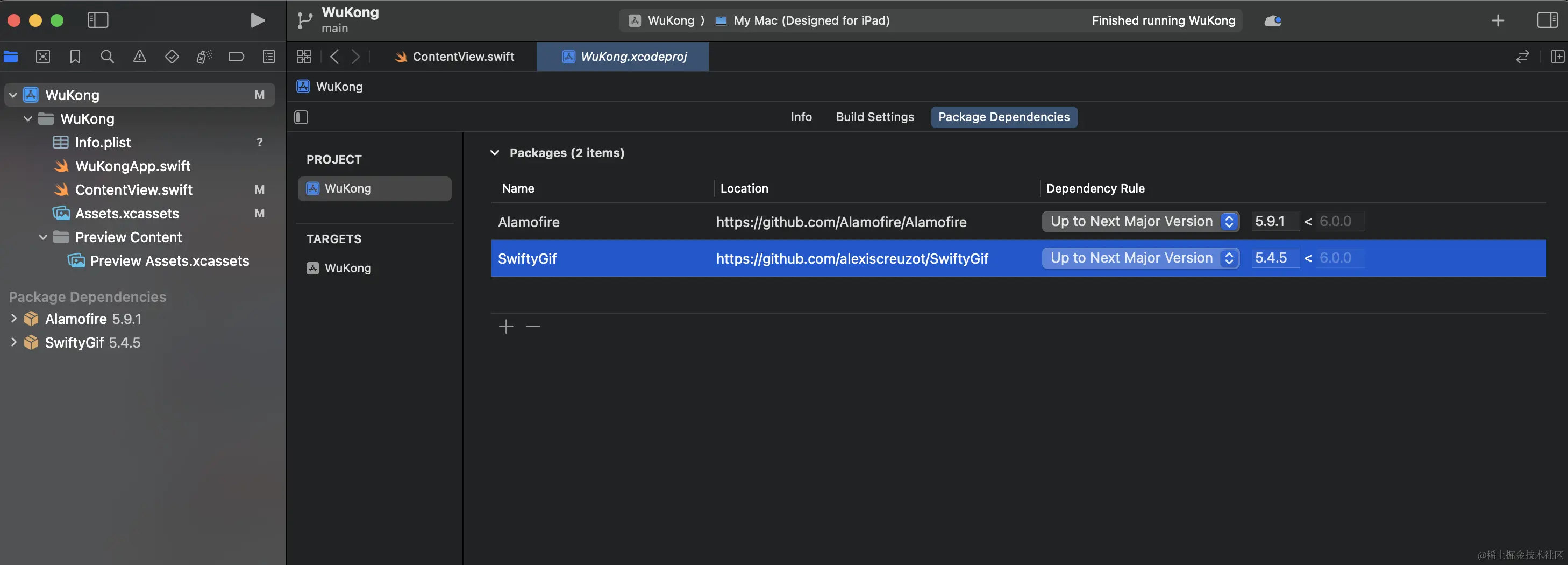 xcode删除依赖包package,删除不必要的依赖项 1024小神 2024-06-01 737 阅读1分钟 点击项目,然后点击PROJECT项里面的Package DepenDependencies: 选中一个依赖项,然后点击减号,就可以把依赖项删除掉了,左侧项目下面的Package已经没有了这个依赖项 TARGET下面的package也要删除:在这里删除依赖项
