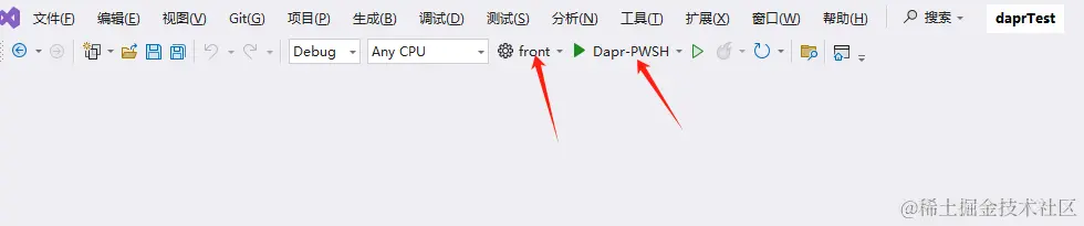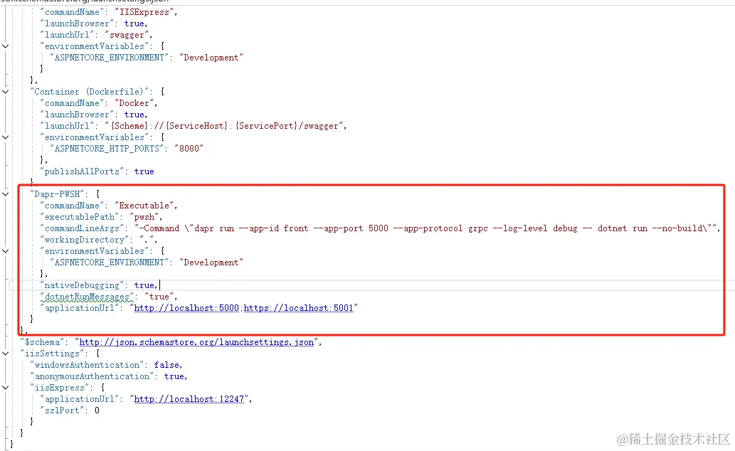 "commandLineArgs": "-Command \"dapr run --app-id front --app-port 5000 --app-protocol grpc --log-level debug -- dotnet run --no-build\"",