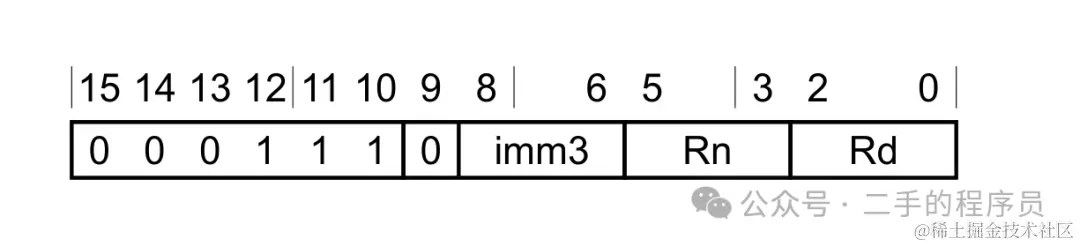 在短指令里面,只能使用 R0-R7 这几个寄存器,如果要使用R8-R12,则会生成长指令。这里可以在指令编码中体现出来,我们看一个 add 指令的例子:
