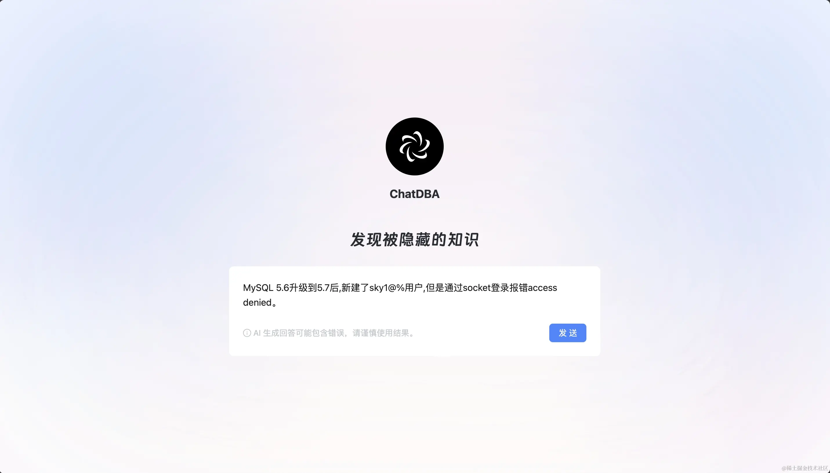 社区王牌专栏《一问一实验:AI 版》全新改版归来,得到了新老读者们的关注。其中不乏对 ChatDBA 感兴趣的读者前来咨询,表达了想试用体验 ChatDBA 的意愿,对此我们表示感谢 🤟。