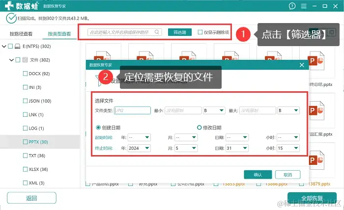步骤2:等待扫描完成,可以直接在【筛选器】快速定位文件;