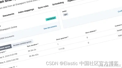 对于其他连接器,增量同步是通用的 - 它只是在将文档提取到 Elasticsearch 之前检查文档时间戳 - 如果此文档已在索引中并且时间戳没有更改,则不会提取它。它比 Sharepoint Online 采用的以前的方法节省的时间更少,但适用于所有连接器。一些连接器(包含大型文档的连接器)从这种逻辑中受益匪浅,而其他连接器(受到第三方系统限制且包含相对较小的文档的连接器)则无法从增量同步中获益。