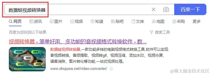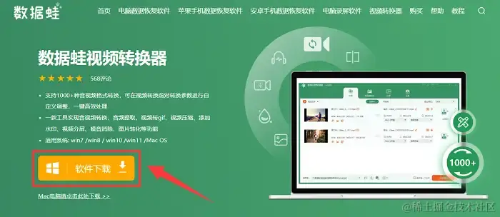 转换视频格式前,我们需要在电脑安装专业的视频格式转换软件。通过软件的下载链接直接打开网页,或者在任意浏览器上搜索数据蛙视频转换器,点击并打开它的官方网站,点击**【软件下载】**按钮。