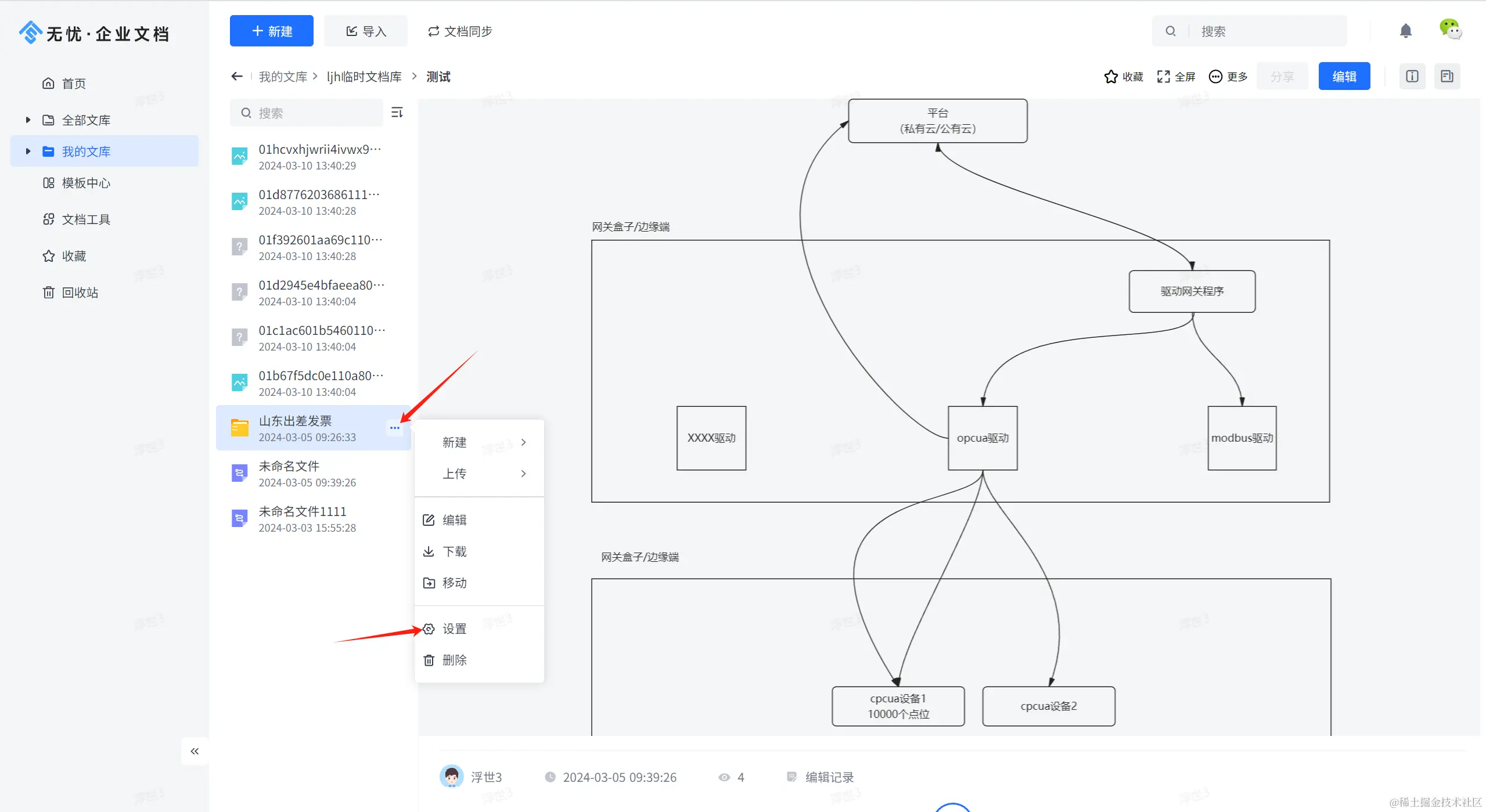 在目录中,点击文件夹的操作按钮“...”,如下图所示,点击设置,可进入权限管理页面