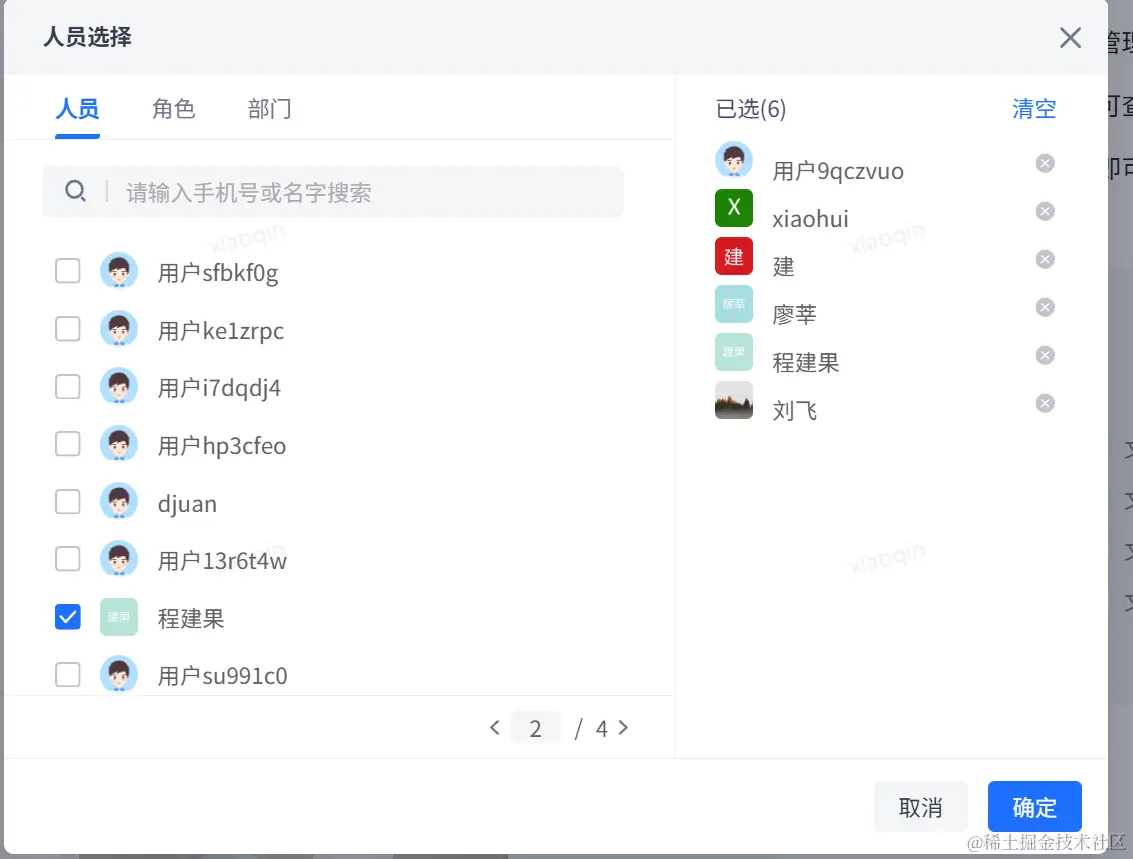 ③:可在当前权限组 中增加或者删除成员,点击 添加人员时则弹出人员选择器