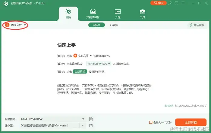 第1步:首先,您需要下载并安装数据蛙视频转换器软件。您可以从官方网站上下载该软件,并按照安装向导进行安装。