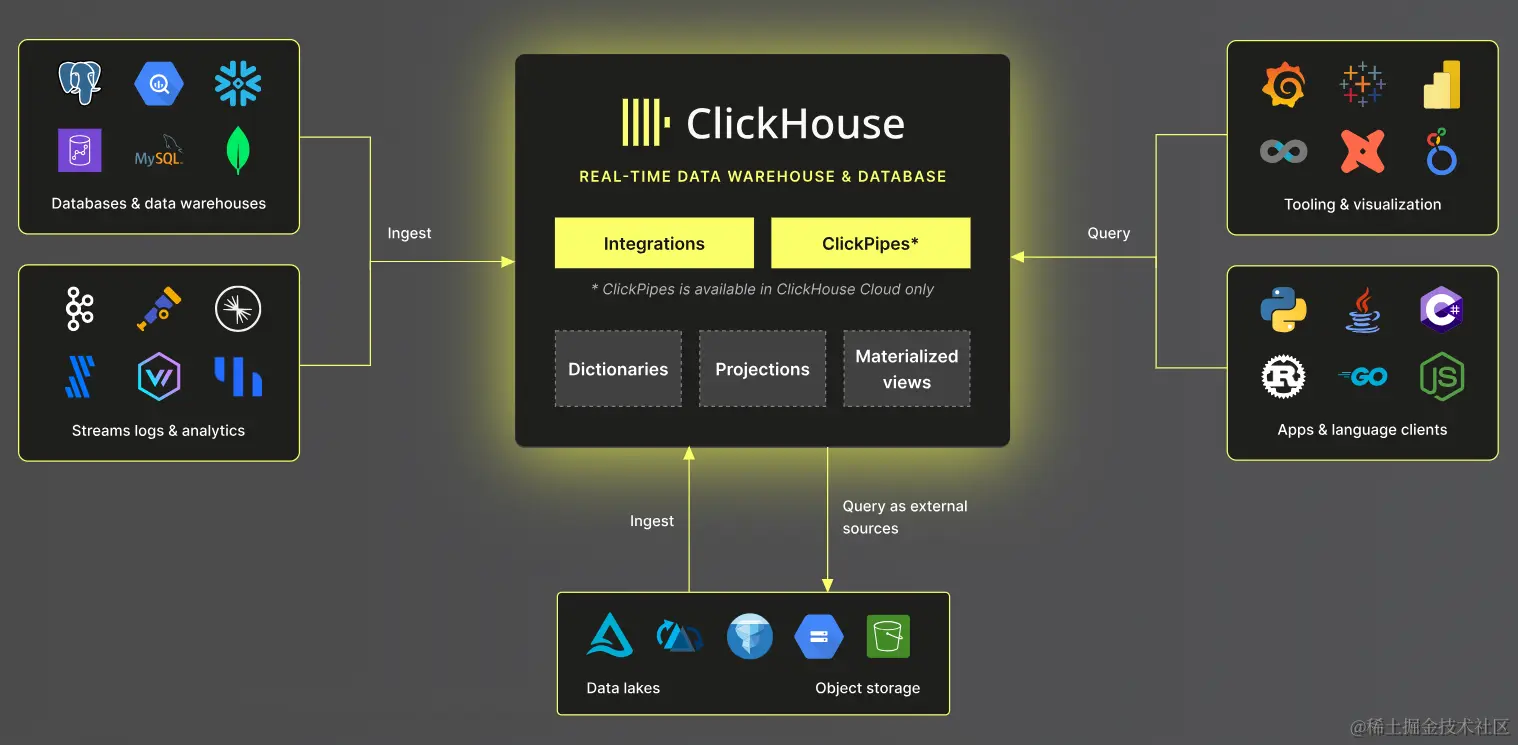ClickHouse 作为一个强大的列式数据库管理系统,支持多种数据源,使得用户能够方便地将数据导入 ClickHouse 进行存储和分析。以下是常见的 ClickHouse 数据源: