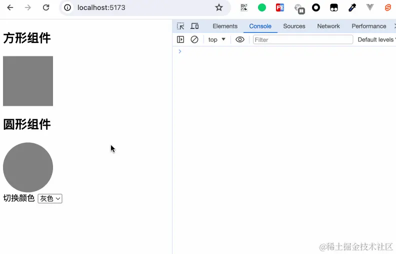 我们的App.svelte中具有控制组件切换颜色的方法,每个组件接收context的store值,监听store的变换,然后更改组件的行内样式。