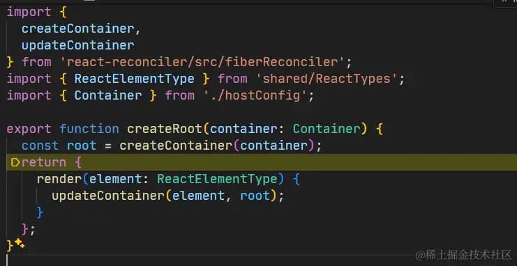 我们去调用自己的demo中可以看见,创建root后调用了render这个方法