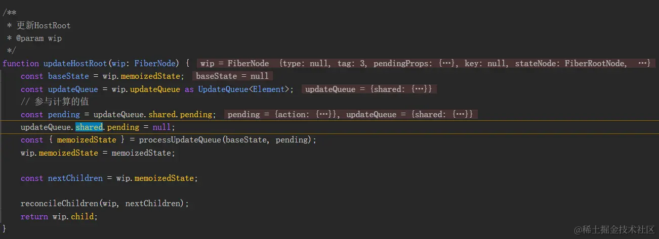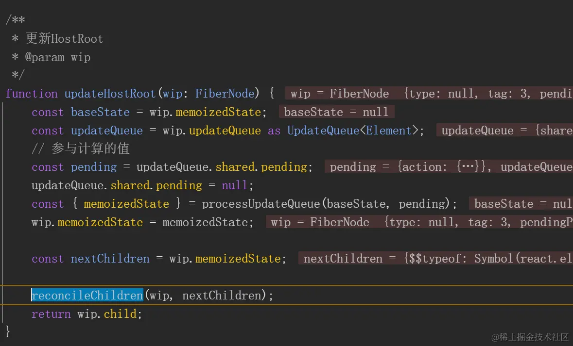 可以看到的是 updateHostRoot 中