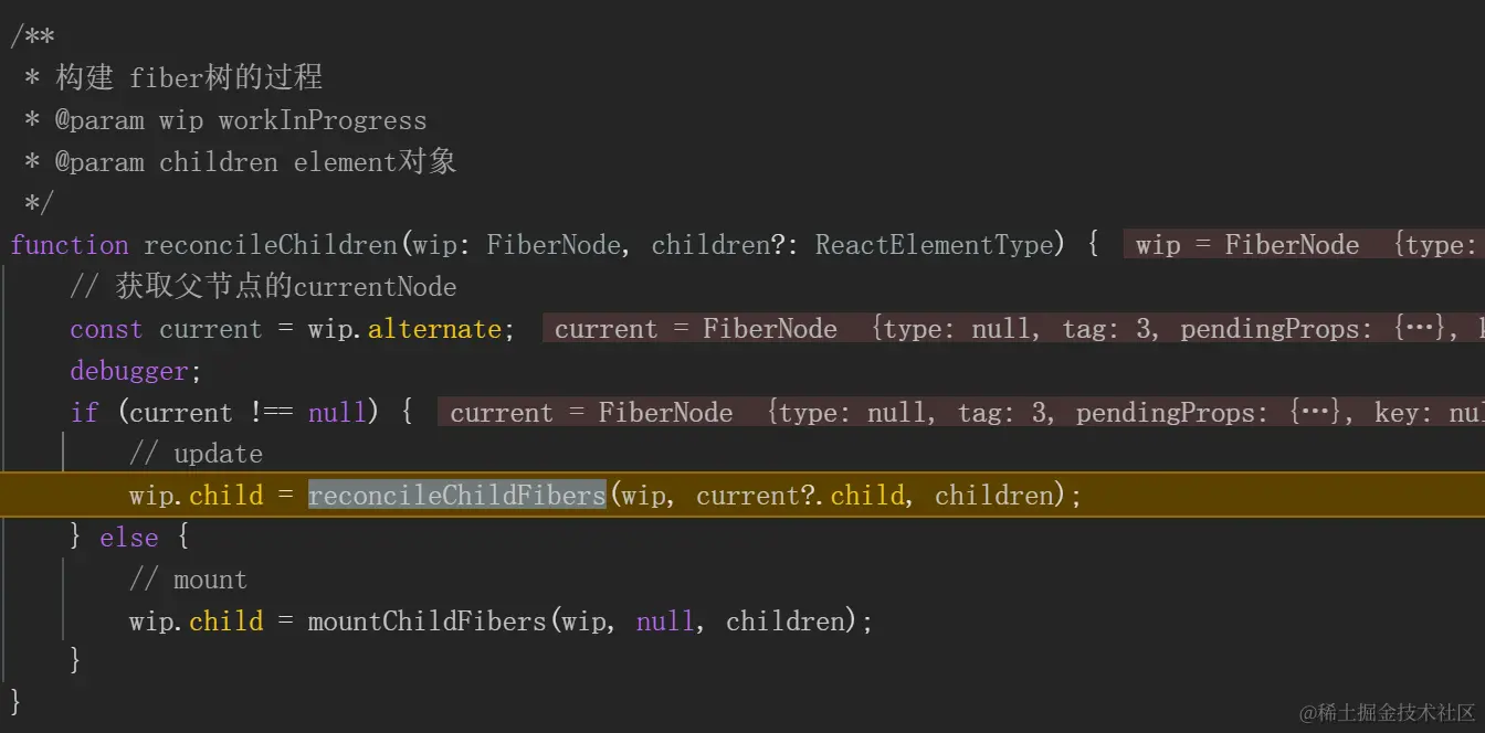 wip.child = reconcileChildFibers(wip, current?.child, c hildren);