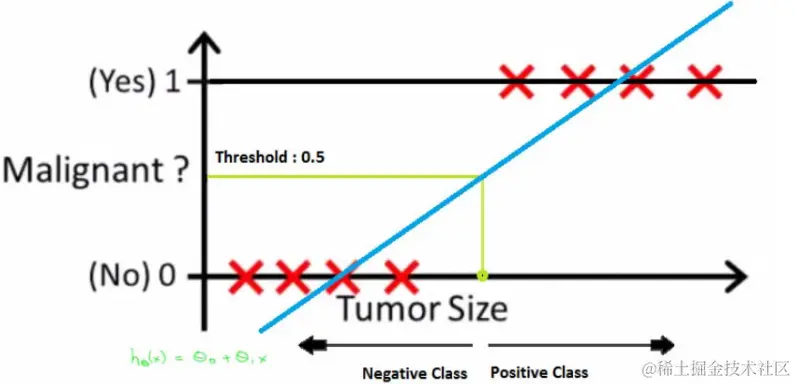 - 我们可以设定一个阈值,大于和小于这个阈值的分别属于两类(等于阈值呢,爱咋咋地,影响不大)