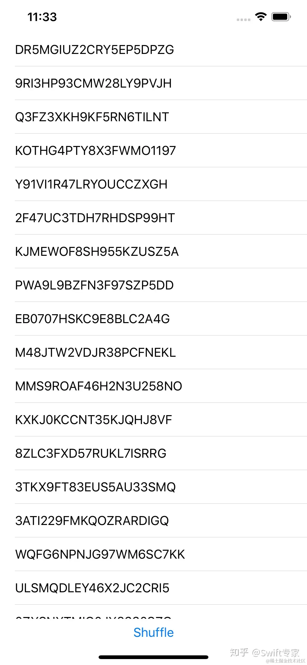 @State private var array = (0..<500).map { _ in String.random() }